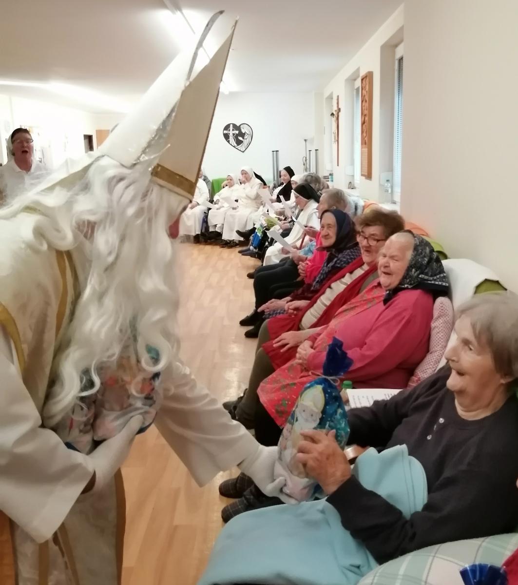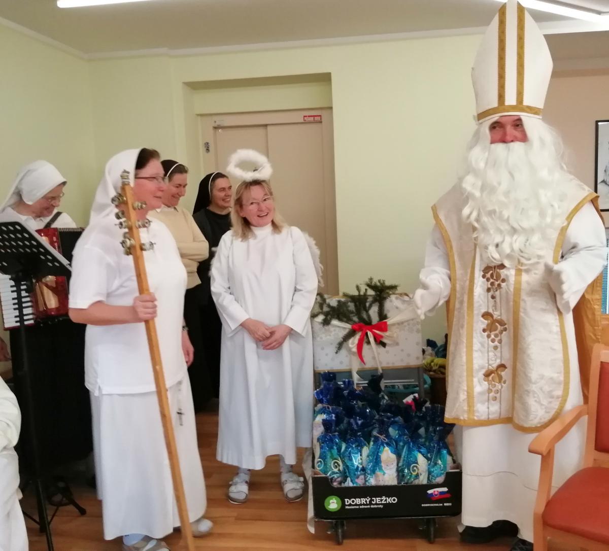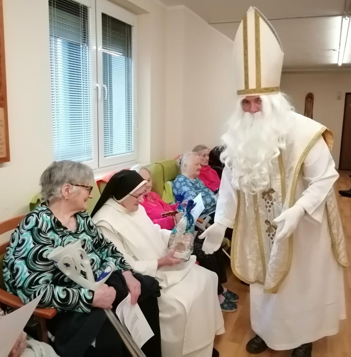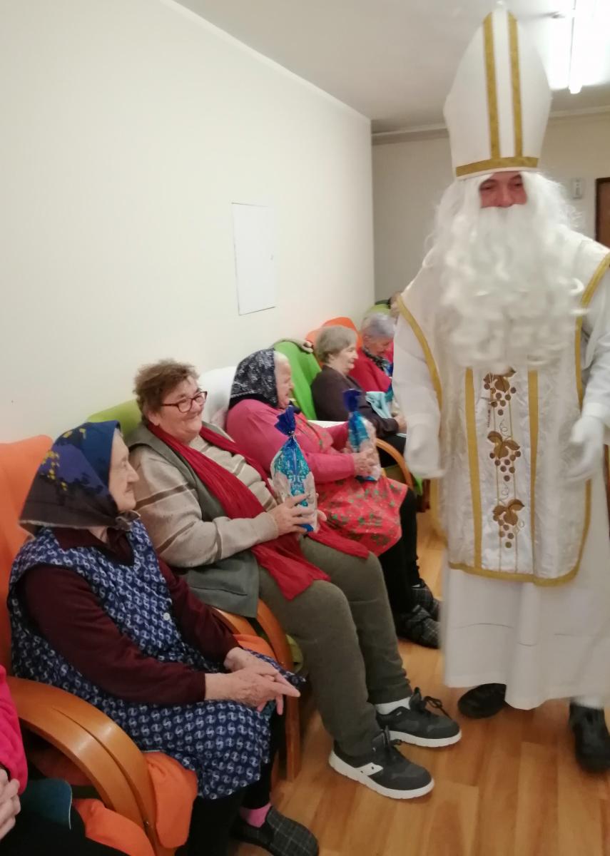 Keď do Domova sv. Dominika zavítal Mikuláš v sprievode anjela, bežný deň sa premenil na výnimočný okamih plný radosti a pokoja. Starkí ho privítali spevom i básničkami a keď sa svätý Mikuláš pustil do rozdávania balíčkov, úsmevy na tvárach pribúdali. Vzácny hosť navštívil a obdaril aj ležiacich na izbách a potešil ich nielen balíčkom plným dobrôt, ale hlavne láskavým slovom. Zatiaľ čo Mikuláš štedro rozdával darčeky, ostatní si pospevovali mikulášske pesničky a vypočuli si aj príbeh o svätom Mikulášovi – svätcovi, ktorý svojou láskou k blížnym prinášal nádej tým najzraniteľnejším. V závere sa starkí poďakovali za milú návštevu i štedré balíčky a svätému Mikulášovi zaželali šťastnú cestu.