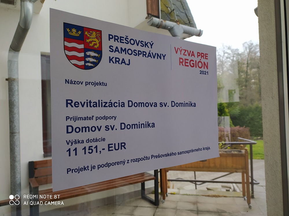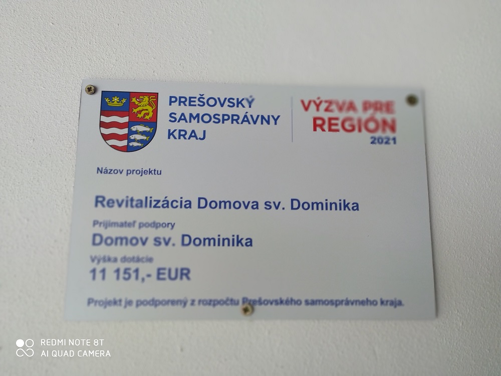 Zamestnanci i obyvatelia Domova sv. Dominika ďakujú Prešovskému samosprávnemu kraju za finančnú pomoc, vďaka ktorej sa v domove bude znovu o trochu lepšie pracovať a žiť.