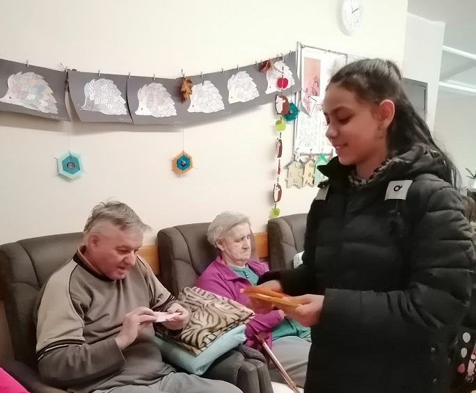 Po recitácii deti strávili čas so starkými a predstavili im činnosť komunitného centra. Spoločne si potom zaspievali obľúbenú ľudovú pieseň „A od Prešova,“ ktorá všetkých naladila na radostnú nôtu a priniesla úsmevy na tváre.