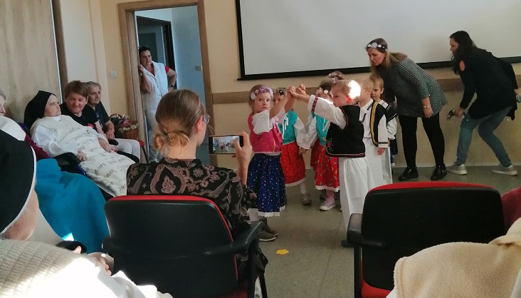 V jedno októbrové ráno do Domova sv. Dominika zavítala milá návšteva – dvanásť detí z Cirkevnej materskej školy bl. Imeldy v Košiciach. Deti z Motýlikovej triedy prišli svojou radosťou a talentom potešiť srdcia starkých.