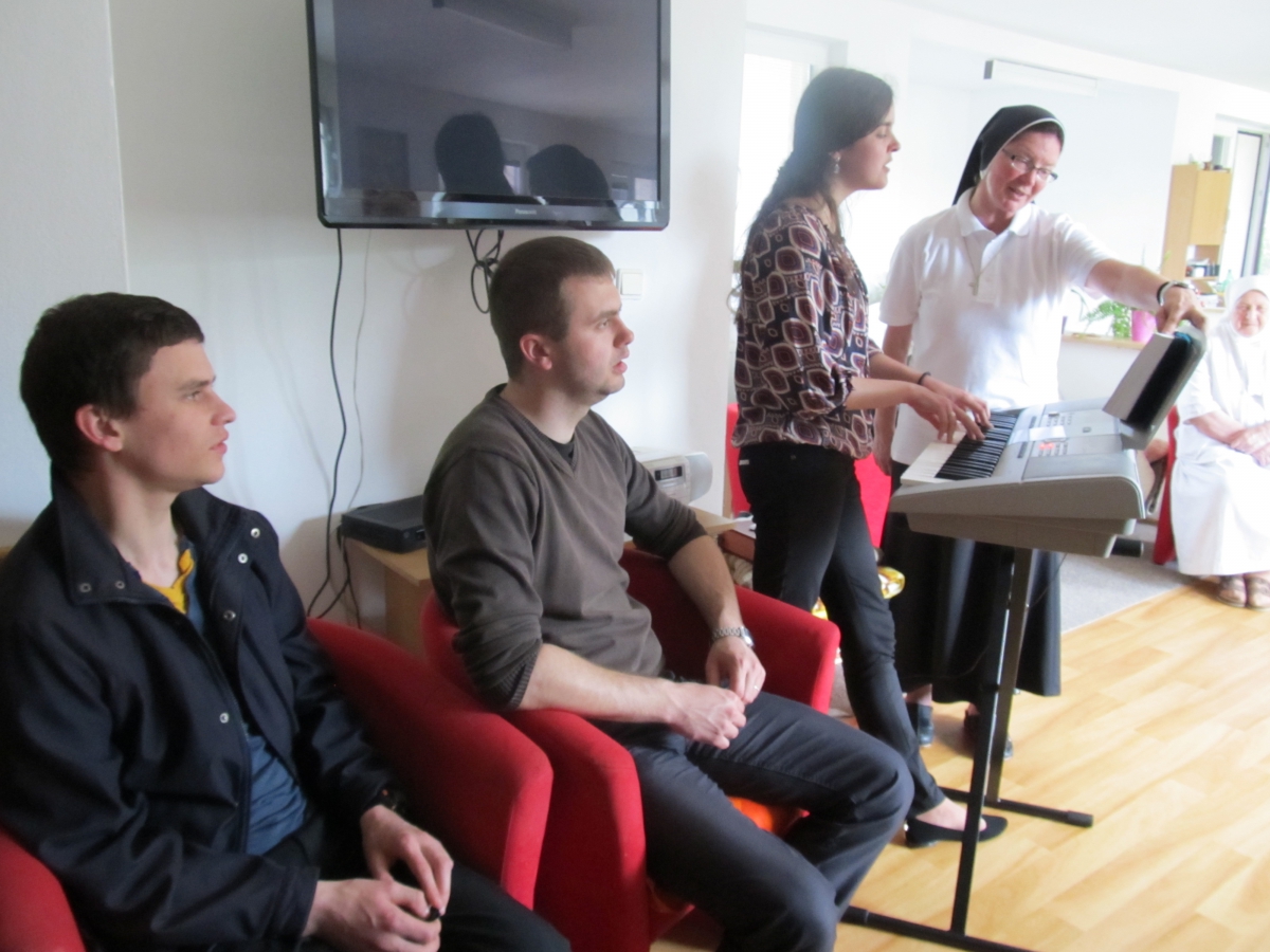 Dňa 6. mája sme sa potešili milej návšteve z Ukrajiny. Zo sestrou Lýdiou nás navštívila Violeta – učiteľka spevu v Mukačeve, Rusland a Žeňa – diakoni mukačevskej diecézy. Zaspievali nám niektoré ukrajinské veľkonočné piesne, pridali aj krásne melancholické národné piesne a potom sme si spolu aj zatancovali. Žeňa nás informoval o ťažkej situácii na východnej Ukrajine, kde sa ešte stále bojuje a zomierajú ľudia. Mnohí z nich prežívajú veľmi ťažké chvíle, žijú v neistote, strachu a bolesti. Tiež nás poprosili o modlitby za pokoj v ich krajine a hlavne za pravú múdrosť pre štátnych predstaviteľov Ukrajiny.
