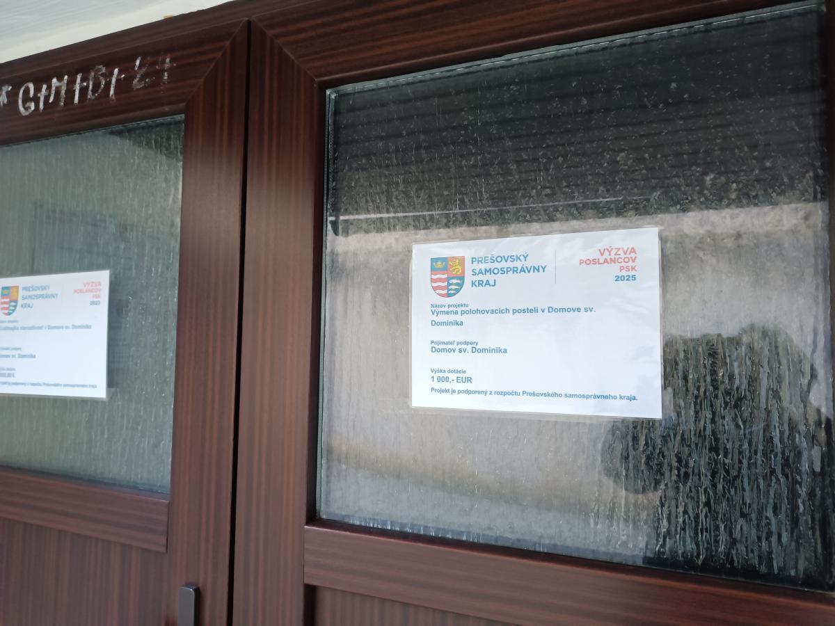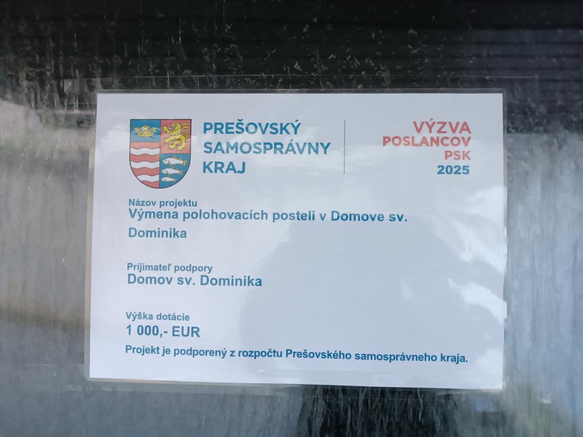 Projekt bol podporený dotáciou z PSK vo výške 1 000,- EUR, z prostriedkov zriaďovateľa z 2% vo výške 2 600,- EUR, Domov sv. Dominika doplatil čiastku 50,- EUR.