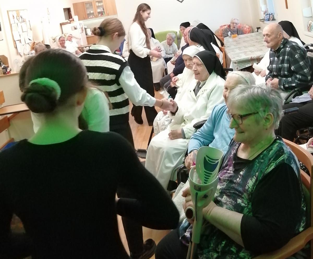 Mladí gymnazisti potešili srdcia seniorov nielen svojím spevom, ale aj drobnými darčekmi a predovšetkým vzácnymi chvíľami strávenými v spoločnom rozhovore. Svoj čas v domove venovali aj účasti na svätej omši, kde zotrvali v modlitbe spolu s obyvateľmi domova.